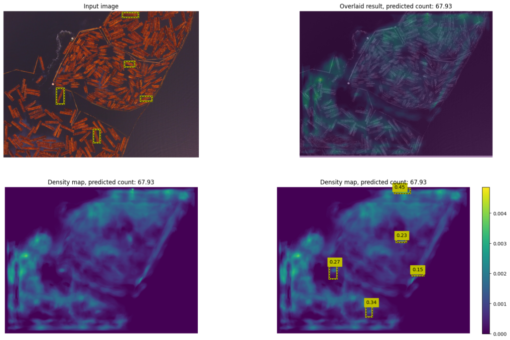 As a side project, I have explored the application of Computer Vision techniques to perform some detection and counting tasks which could be useful for industrial applications, such as in forestry and marine environmental monitoring
